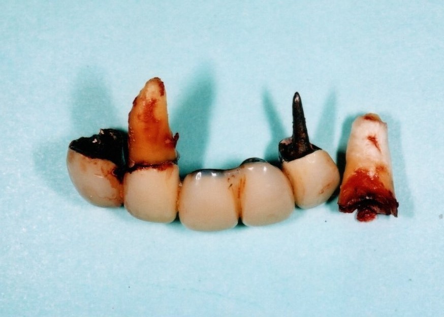 少ない支えで過重負担となり、支える歯ごと抜けてしまいました。