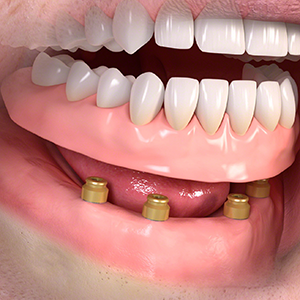 インプラントを埋め込み、固定用のロケーターを装着し、入れ歯をしっかりと固定する治療法です。
