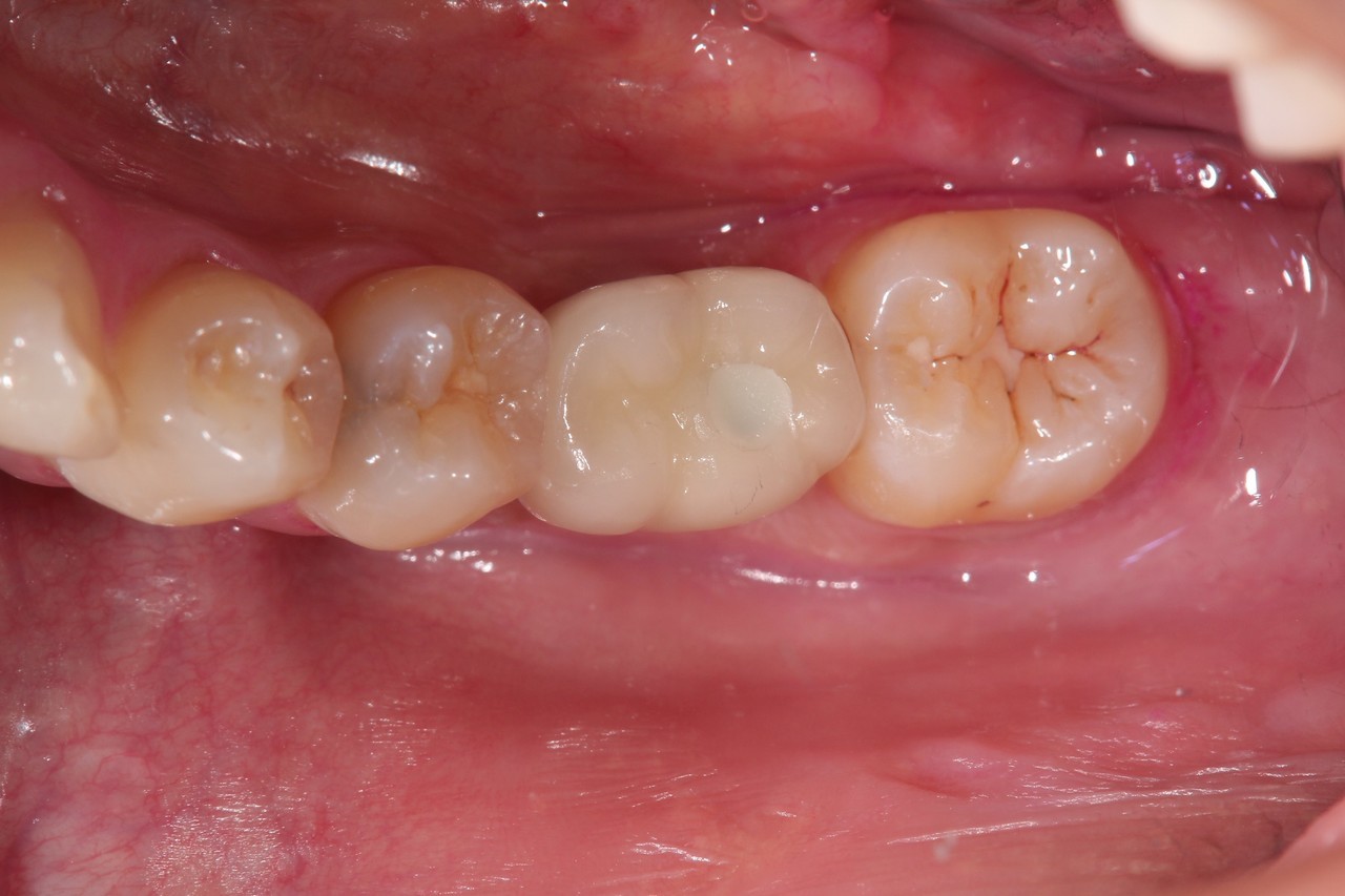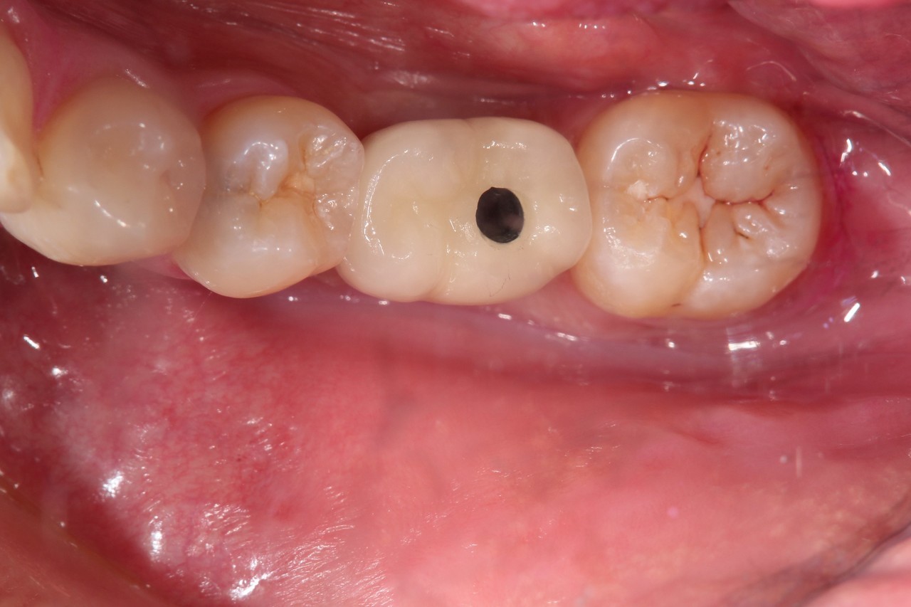 インプラントを埋入し、最終的な被せ物を装着しました。(ネジ穴をふさぐ前)