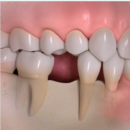 ・隣の歯や噛み合う歯が移動し、歯並びが乱れる