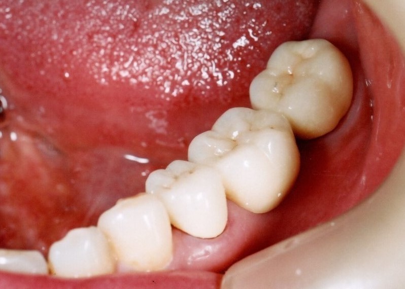 少ない本数の土台で支えるブリッジの場合、過重負担のため、支える歯がむし歯や歯槽膿漏で悪くなると、ブリッジ全て失う可能性があります。
