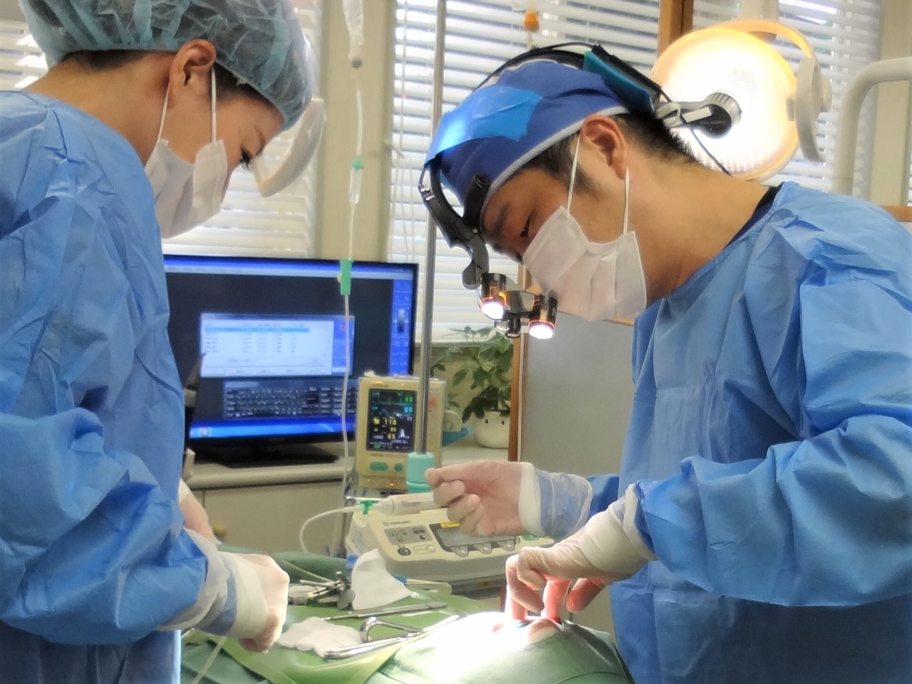 感染予防と術野確保のために、手術の約1週間前に歯のクリーニングを行います。