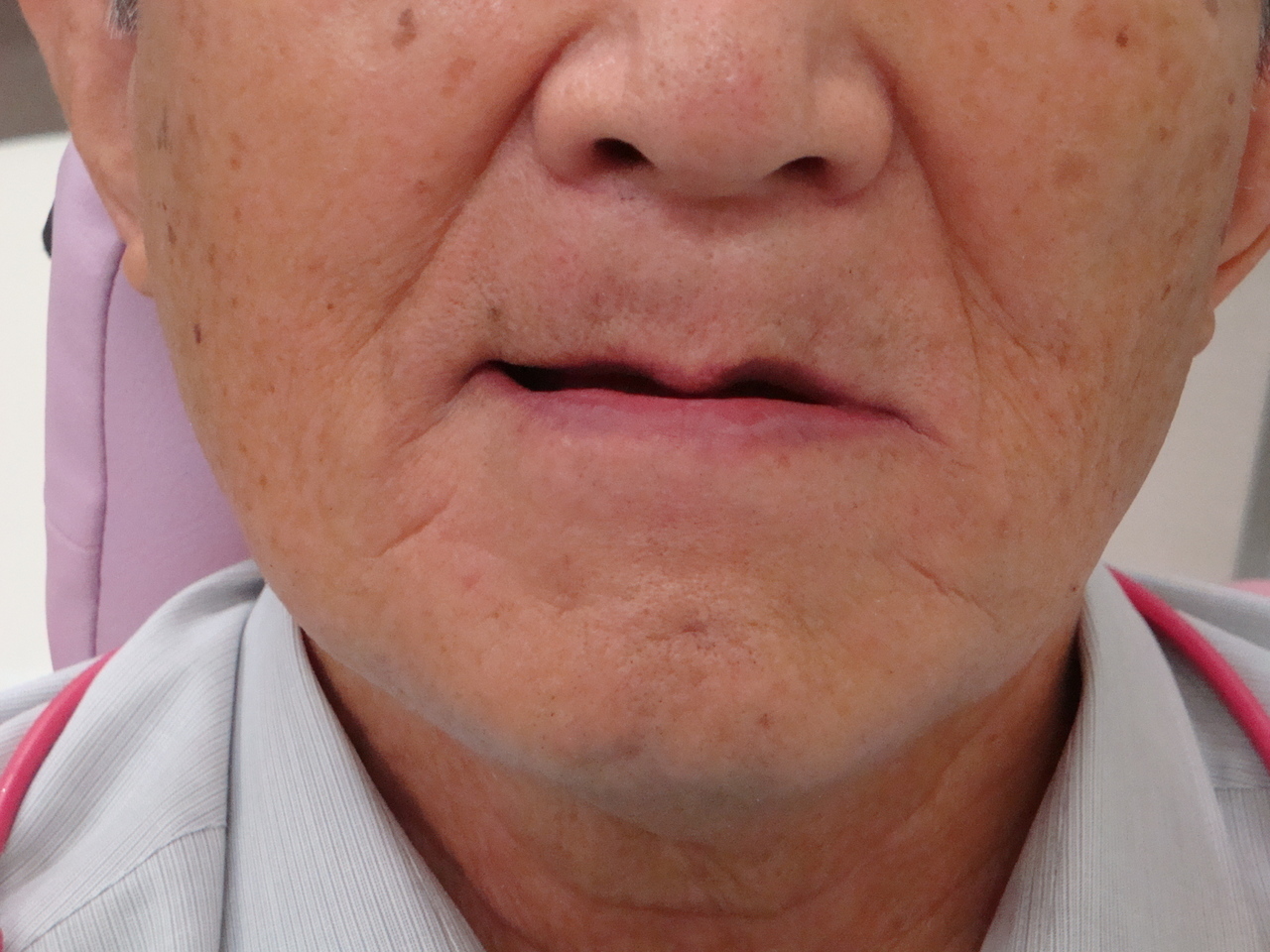 上顎前歯部によって口腔側から上唇を支えることをリップサポートと言いますが、歯を失った後に骨の吸収が進み、顎堤(歯が生えていた土手状に盛り上がった歯肉の部分)が吸収した場合、義歯を入れていない状態だと口腔側からの支えがなくなります。そのため口元が入り込んでしまい、しわが目立ち老けて見えてしまいます。入れ歯の床(ピンク色の部分)によって吸収した顎堤を復元することで、適切なリップサポートを回復することができます。口唇を形成する筋は顔の表情を作ったり、発音時の口唇の動きを円滑にします。総入れ歯や前歯が長い間ないままで過ごしてきた方には、リップサポートをするためオーバーデンチャーをお勧めします。