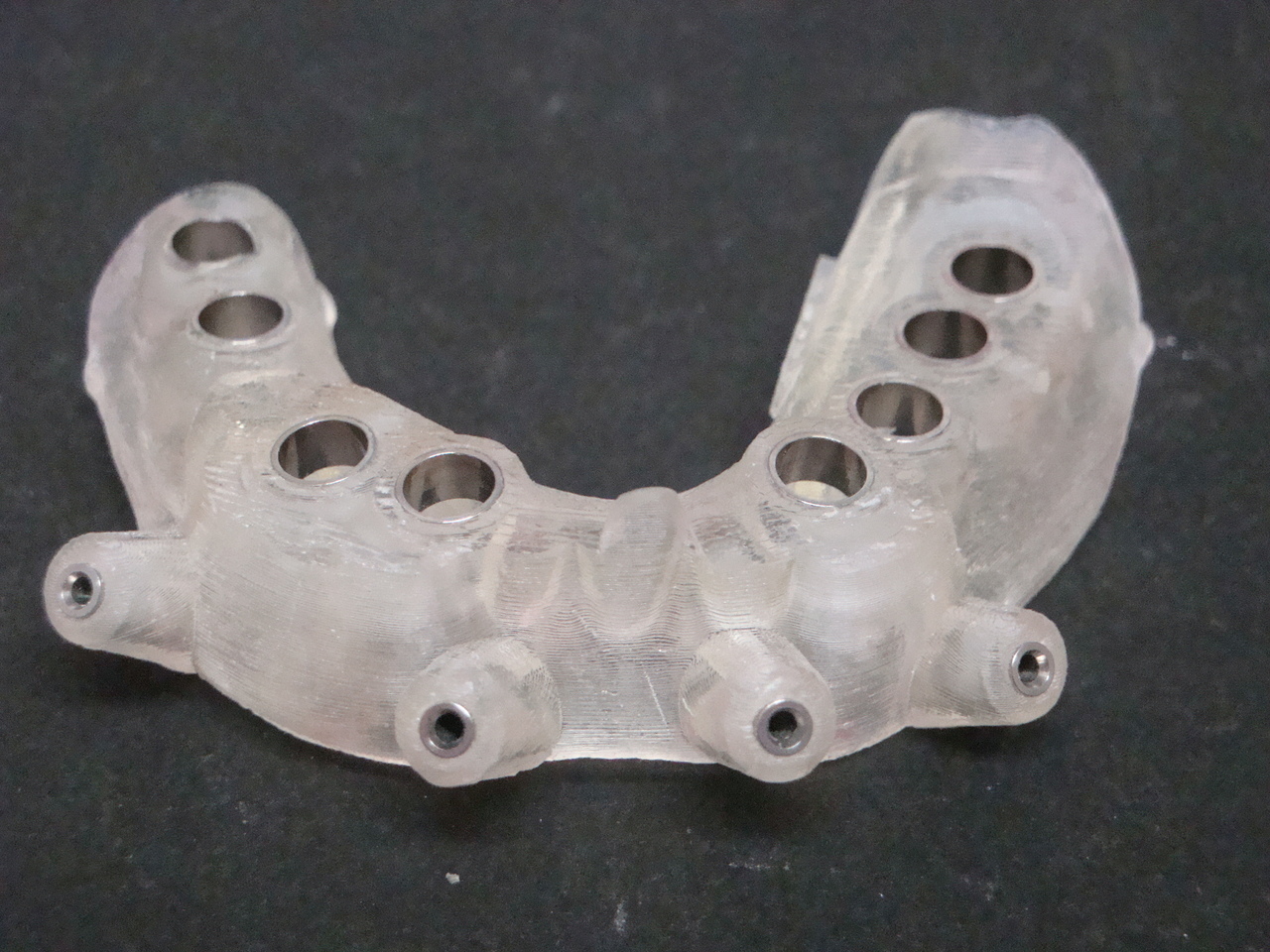 CT画像上にて決定した埋入位置で製作された埋入ガイド。正確でスムーズな手術を行えます。