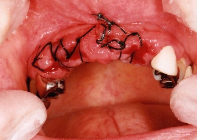 手術で歯肉をめくって骨にインプラントを埋め込みます。治癒期間を待ちます。