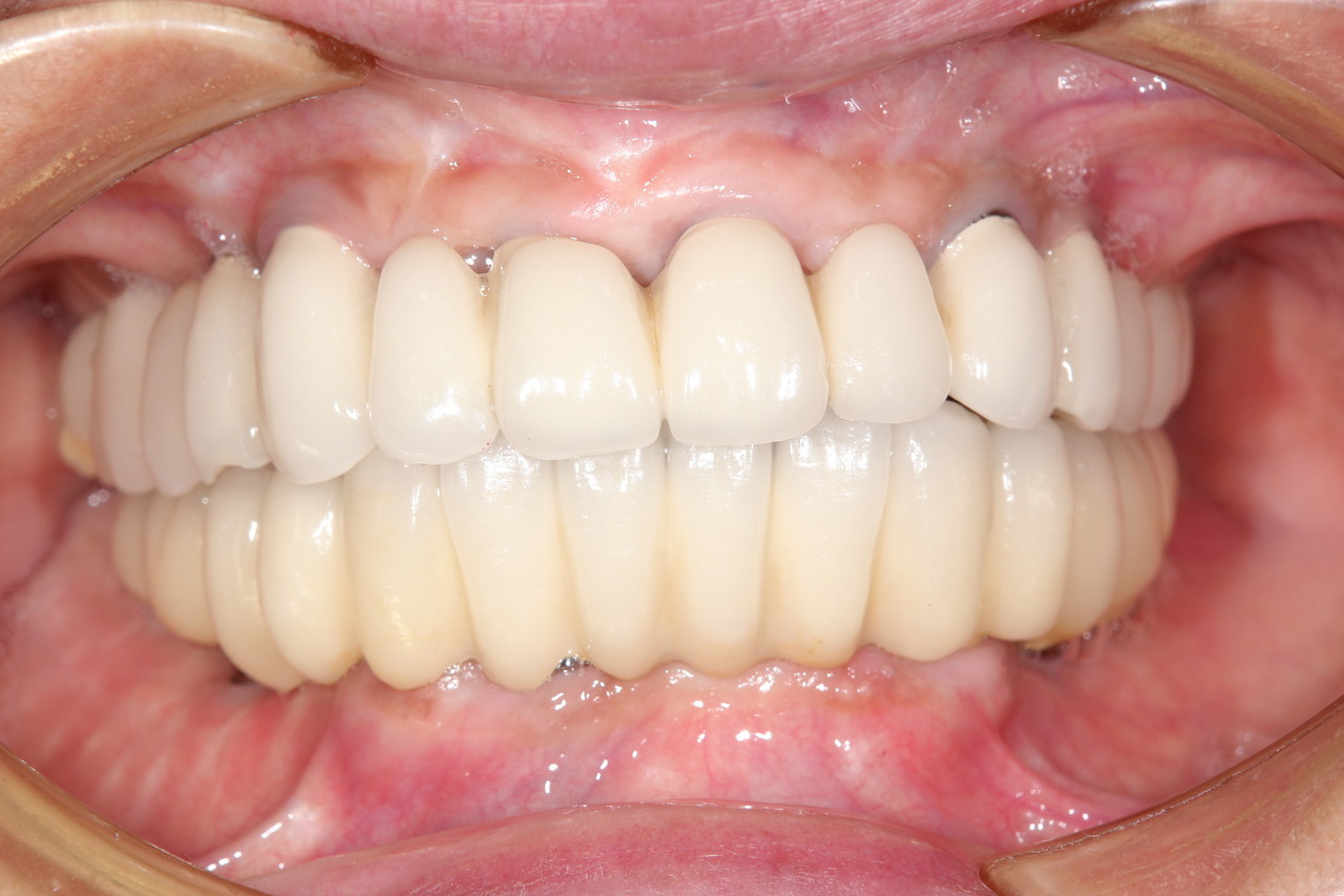 6本のインプラントを埋入し、12本の歯を並べています。第二大臼歯を作らない場合の理想的な治療法になります。