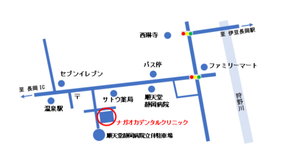 〒410-2211 静岡県伊豆の国市長岡1322-9 (順天堂静岡病院立体駐車場前)