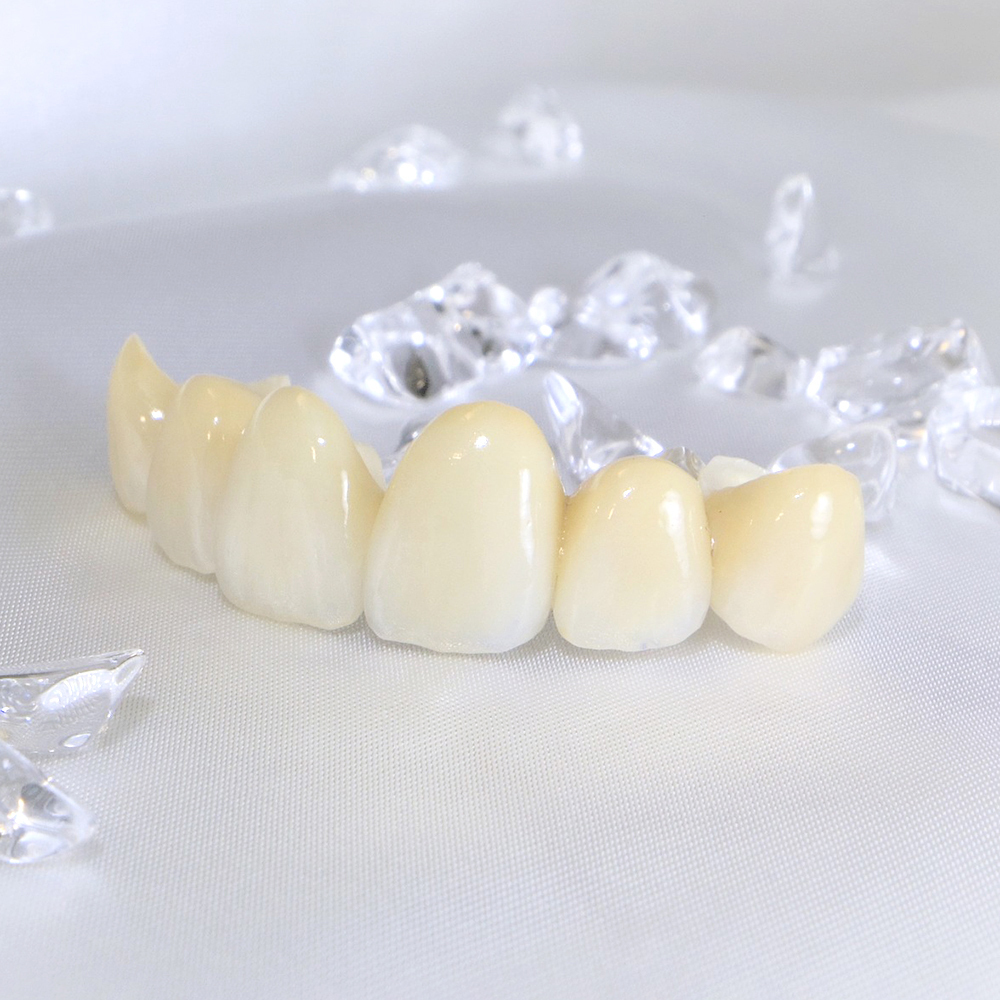 金属やプラスチックを一切使わず、セラミックのみで作られるインレー(詰め物)・クラウン(被せ物)です。透明感に優れており、天然の歯のように美しい仕上がりを目指せます。